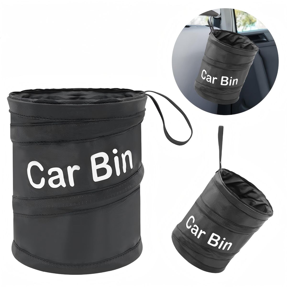 This portable folding car trash can features a sleek round shape and classic black finish, perfect for fitting neatly in car seats or door pockets. Crafted with durable double-layer Oxford fabric, it resists tears and spills, keeping your vehicle tidy. The compact, foldable design allows easy storage when not in use. Ideal for holding small wastes like snack wrappers or tissue. A practical, space-saving solution to maintain a clean car interior.