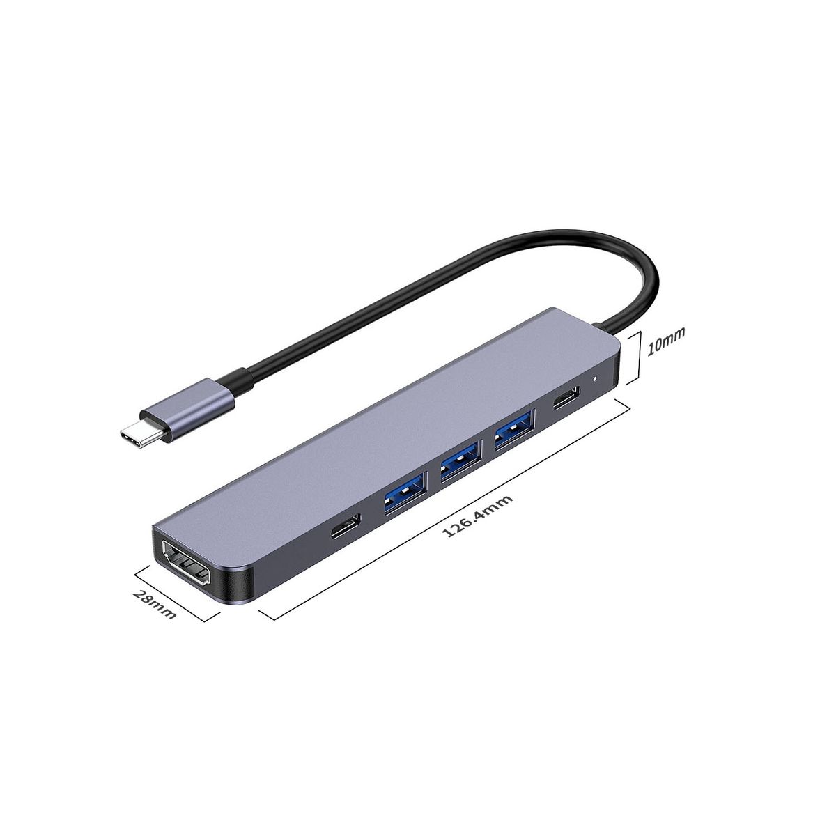 Turn your laptop into a full workstation with this sleek USB-C 6-in-1 multiport hub; it's the no-fuss way to connect everything without the clutter. Plug in via the braided USB-C cable to your MacBook Pro, Dell XPS, Surface, or iPad Pro, and instantly get 100W PD charging to keep your device juiced while you work. Hook up a 4K HDMI monitor for crisp external display output, transfer files at 5Gbps speeds through three USB-A ports and one USB-C data port, or slot in SD/TF cards for quick photo imports. The aluminum shell feels premium and tough, staying cool during long sessions, and it's plug-and-play across Windows, macOS, or ChromeOS; no drivers needed. At just pocket-sized, this portable docking station is a game-changer for travel adapters, office setups, or gaming rigs, letting you daisy-chain peripherals like keyboards, mice, or drives effortlessly. Say goodbye to port shortages; this universal type C hub boosts productivity on the go, whether you're editing videos, presenting, or multitasking like a pro.