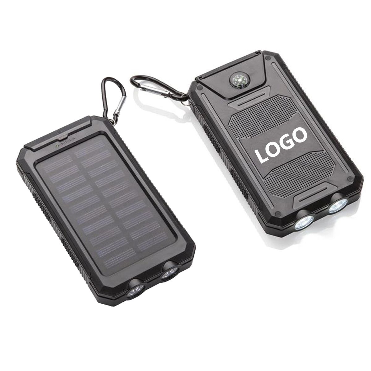 Find your way to your next branded giveaway - even in the dark - with this cool tool! Connect with your tech-savvy customers and supporters with this solar-powered Powerbank that has a bright LED flashlight and working compass. Features include a rechargeable lithium polymer battery and a big 10000mAh charging capacity. Add your school, sports team, organizational or company logo or message through our signature silkscreen method to customize. Free virtual proof ! 3-5 working days fast shipping!