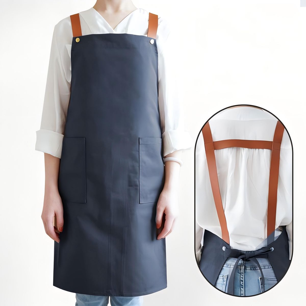 "This high-end men’s apron blends functionality and elegance. It repels water and oil, ideal for catering, kitchen work, home baking, and daily use. Custom logo printing adds branding flair. Durable, comfortable, and versatile, it keeps you clean while elevating your professional or home cooking look.